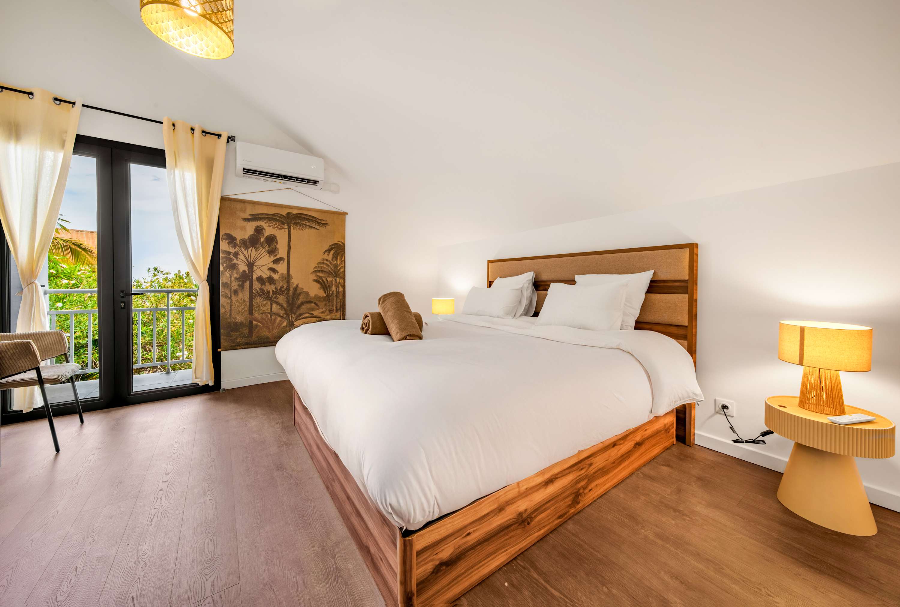 Depuis le salon, vous accédez à une belle suite parentale donnant directement sur la terrasse avec vue piscine :