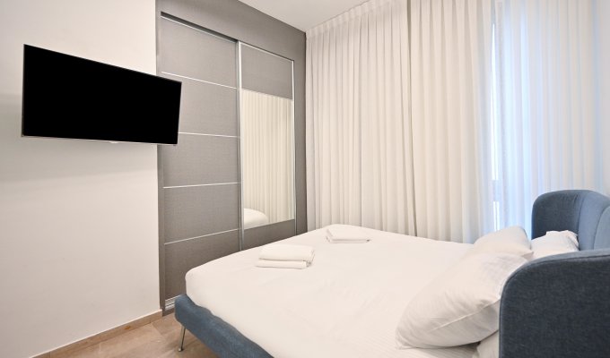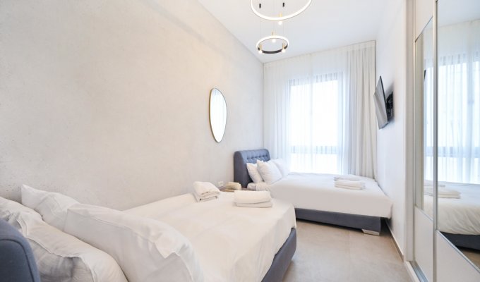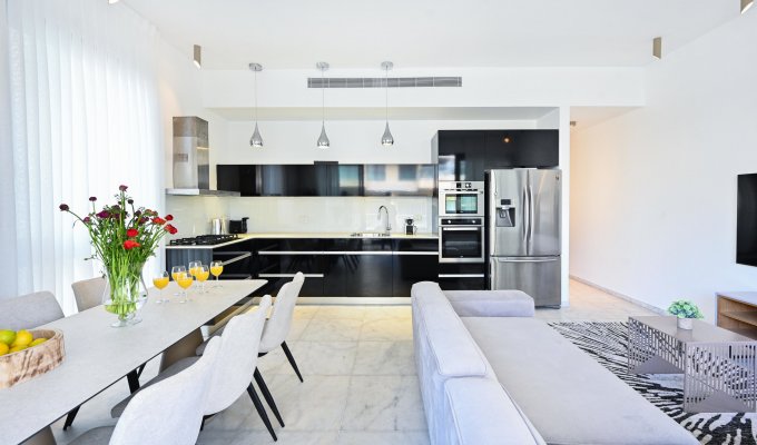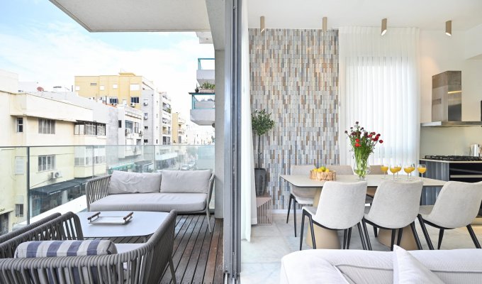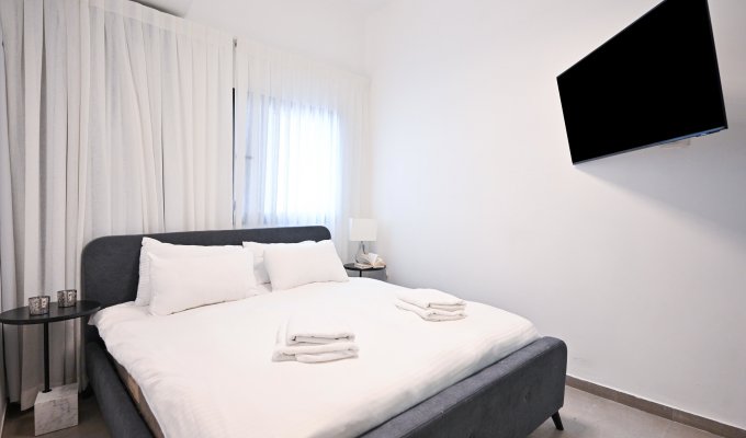 Situé dans la paisible rue Frishman, dans le quartier de Ben Yehuda, cet élégant appartement de 3 chambres et 2,5 salles de bains offre un séjour relaxant pour jusqu’à 8 personnes. Parfait pour les familles ou les groupes, il dispose d’un immeuble tout neuf avec ascenseur, d’intérieurs spacieux et d’un emplacement privilégié à quelques pas de la plage de Frishman. Profitez d’un design contemporain et d’un accès facile à toutes les principales attractions de Tel Aviv.