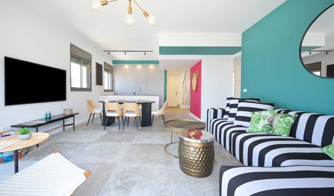 Situé sur la vibrante rue Ezra Hasofer dans le quartier animé de Banana Beach, cet appartement chic de 4 chambres et 3,5 salles de bain offre un séjour élégant pour jusqu’à 8 invités. Parfait pour les familles ou les groupes, l’appartement spacieux dispose de vues imprenables sur la plage, d’un grand salon et d’équipements modernes pour une escapade mémorable.