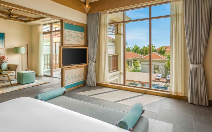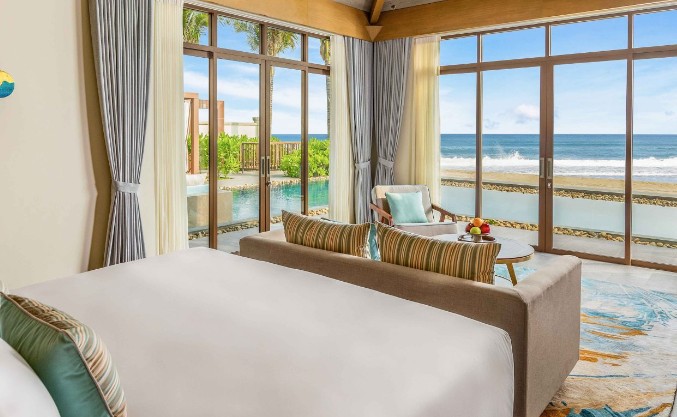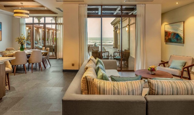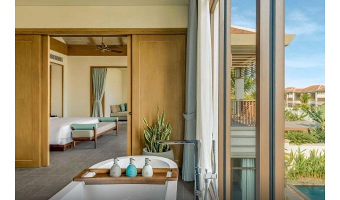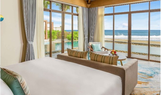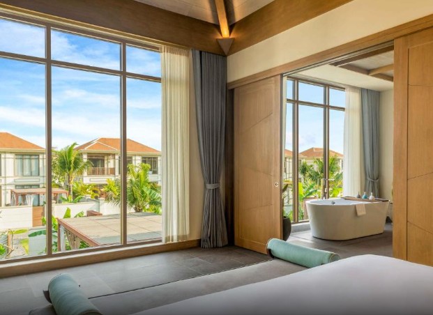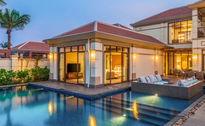 Nichée le long de la côte immaculée, notre magnifique villa en bord de mer avec cinq chambres représente l’apogée du bonheur côtier. Située sur fond de la plage scintillante de Non Nuoc, la villa offre un sanctuaire sans égal. Elle comprend quatre chambres avec lits king-size et salle de bain privative, ainsi qu’une chambre avec lits jumeaux, complétées par de vastes espaces de restauration et de vie. De plus, un espace de détente privé de 150 m² et une piscine offrent l’endroit idéal pour se ressourcer près de la plage. Cette villa exclusive en bord de mer à Da Nang, fusionnant harmonieusement du lit à la plage, est conçue pour des groupes ou des familles exigeants à la recherche d’une expérience privée et mémorable.