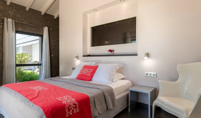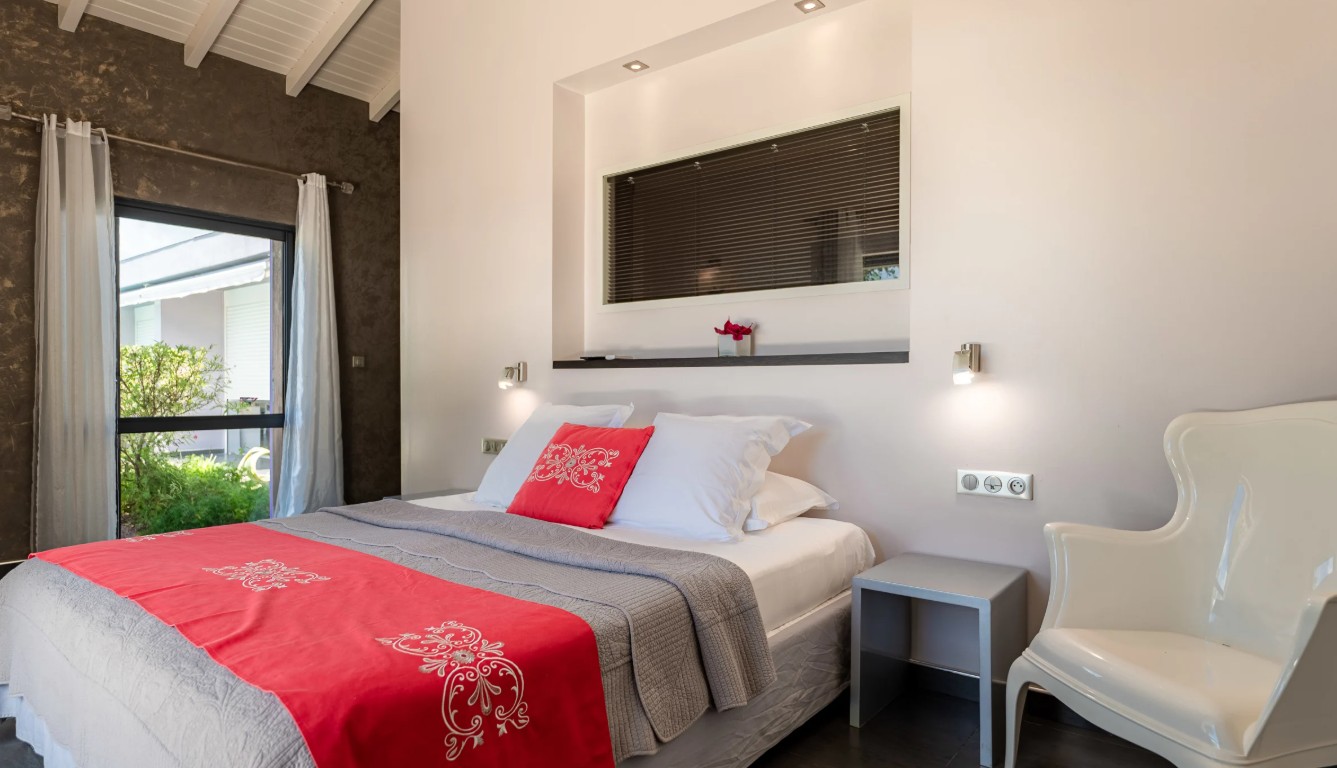 La villa dispose de quatre chambres lumineuses et climatisées, chacune dotée de sa salle de bains privative avec douche à l’italienne. La literie haut de gamme et la décoration harmonieuse garantissent des nuits paisibles dans un cadre apaisant. La cuisine, parfaitement équipée, ravira les amateurs de gastronomie et comprend notamment une cave à vin, idéale pour accompagner vos soirées conviviales.