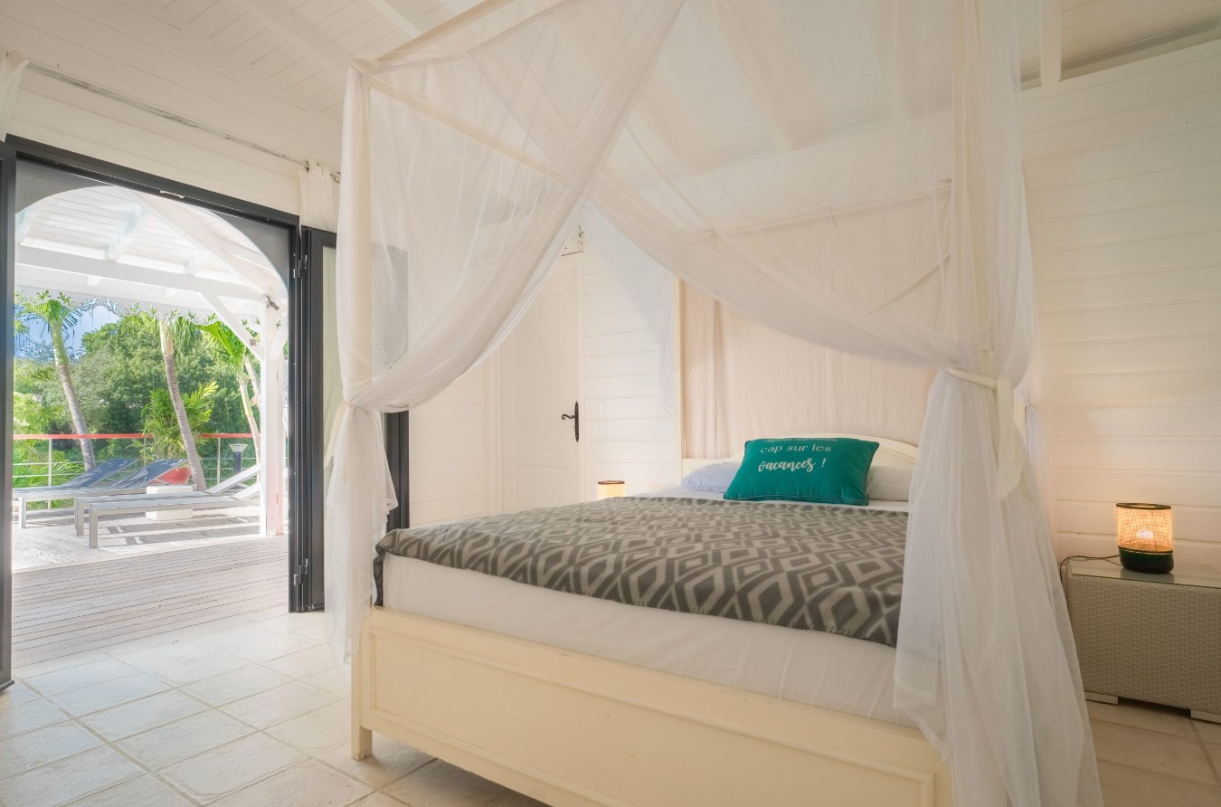 À seulement 800 mètres à pied du centre de Saint-François, au cœur du lotissement privé et recherché “Les Hauts de Saint-François”, cette villa créole haut de gamme est une invitation à la détente et à l’art de vivre antillais.