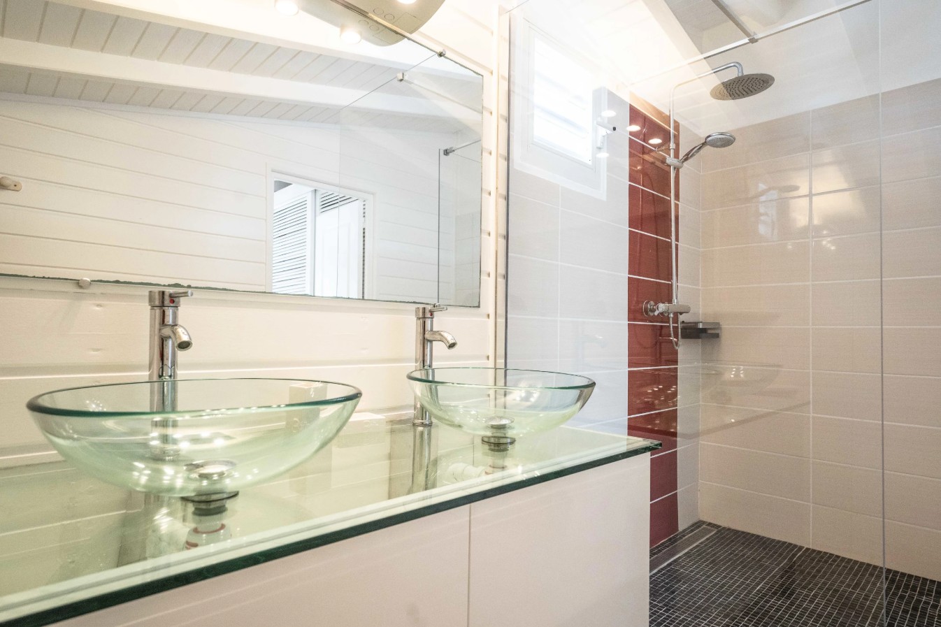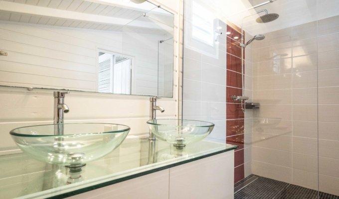 4 salles d’eau avec WC, dont une située dans un bungalow mitoyen à la villa