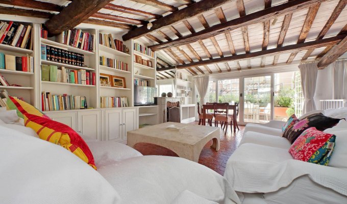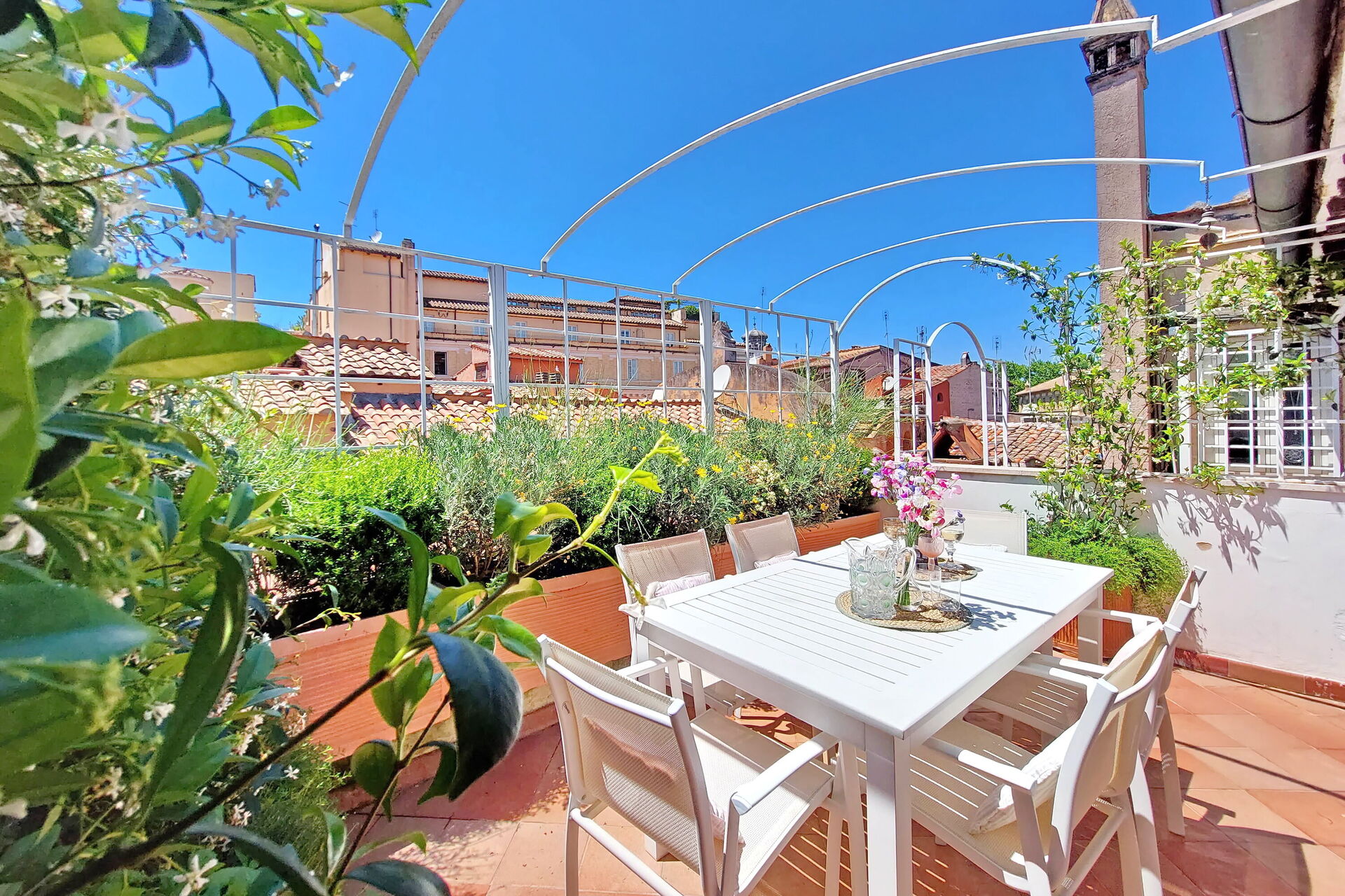 Magnifique duplex spacieux avec terrasse, situé au troisième et quatrième étage avec ascenseur, en plein cœur du centre historique de Rome. Confortable et chaleureux, il est idéal pour un séjour court ou moyen, que ce soit pour affaires ou pour découvrir pleinement la capitale et ses attractions touristiques. Vous pourrez y déguster un verre de vin en admirant la vue imprenable sur les toits de Rome.. Il comprend deux chambres et deux salles de bains, dont une suite parentale au premier étage, une cuisine, un salon et une belle terrasse ensoleillée au deuxième étage. Les principaux sites touristiques de la ville sont accessibles à pied ou en transports en commun. La Piazza Navona, le Campo dei Fiori et le Castel Sant'Angelo sont à quelques minutes en voiture. La Cité du Vatican et le Largo di Torre Argentina sont à seulement 15 minutes à pied. Services
