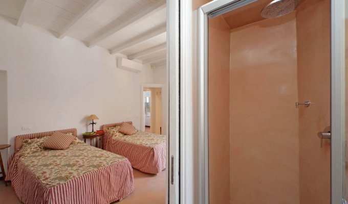 Les deux chambres se trouvent au premier étage. La première, avec salle de bains privative, est équipée de deux lits simples (190 cm x 90 cm) pouvant être réunis sur demande, de tables de chevet, d'une bibliothèque, d'une armoire, d'un fauteuil et d'une commode. La seconde chambre, également au premier étage, dispose d'un lit double (140 cm x 190 cm), d'armoires, d'un fauteuil et d'un coffre-fort. Lampes, miroirs et tableaux complètent l'ameublement des deux chambres. La climatisation est présente dans les deux chambres.