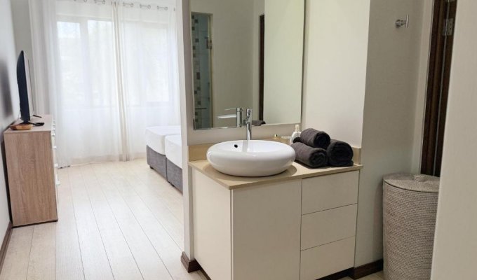 Cet appartement comporte 3 chambres, 3 salles de bains, du linge de lit, des serviettes, une télévision à écran plat avec les chaînes du satellite, une cuisine entièrement équipée et un balcon offrant une vue sur le jardin.