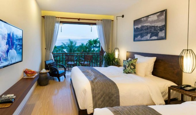 Les clients peuvent profiter d’un spa, d’une piscine avec vue, d’une terrasse ensoleillée et d’activités nautiques. L’établissement comprend également un restaurant servant une cuisine vietnamienne dans une ambiance traditionnelle, un bain à remous ainsi qu’un bar au bord de la piscine.