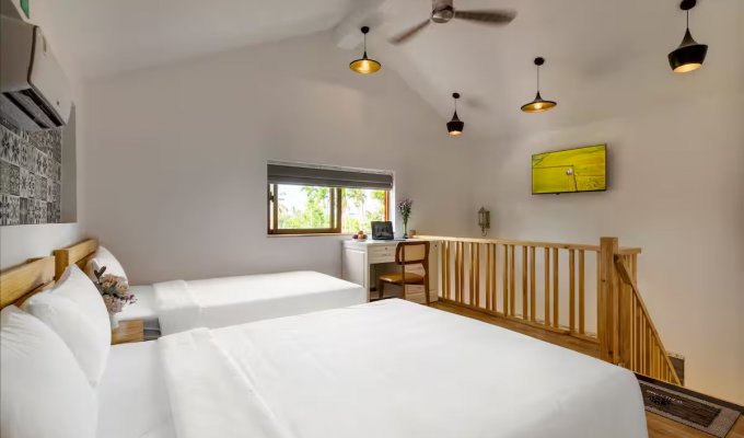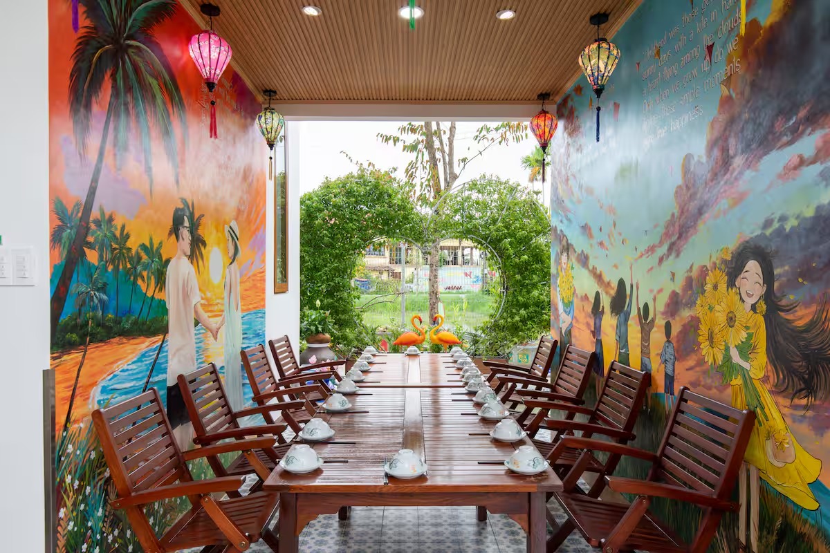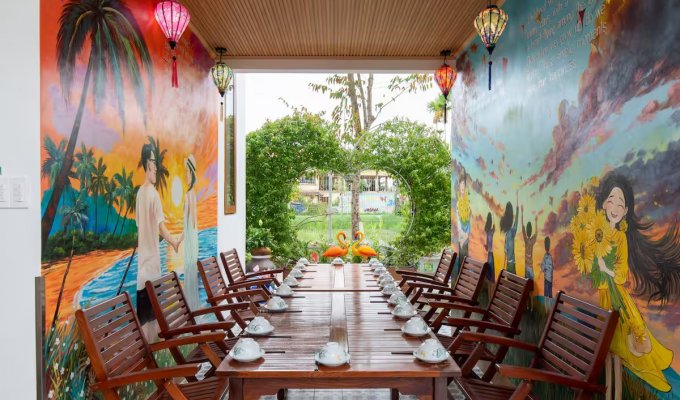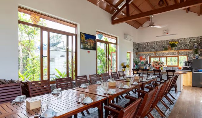 Cette toute nouvelle villa de 8 chambres est l'escapade idéale pour les familles, les grands groupes ou les retraites. Situé sur la rue Cua Dai, à seulement 2 km de la vieille ville, vous séjournerez à proximité de l'action tout en profitant d'une tranquillité totale et d'une vue imprenable sur les rizières.