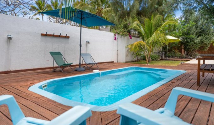 Elle est entièrement meublée et équipée, avec un grand jardin arboré et exotique donnant sur la piscine.