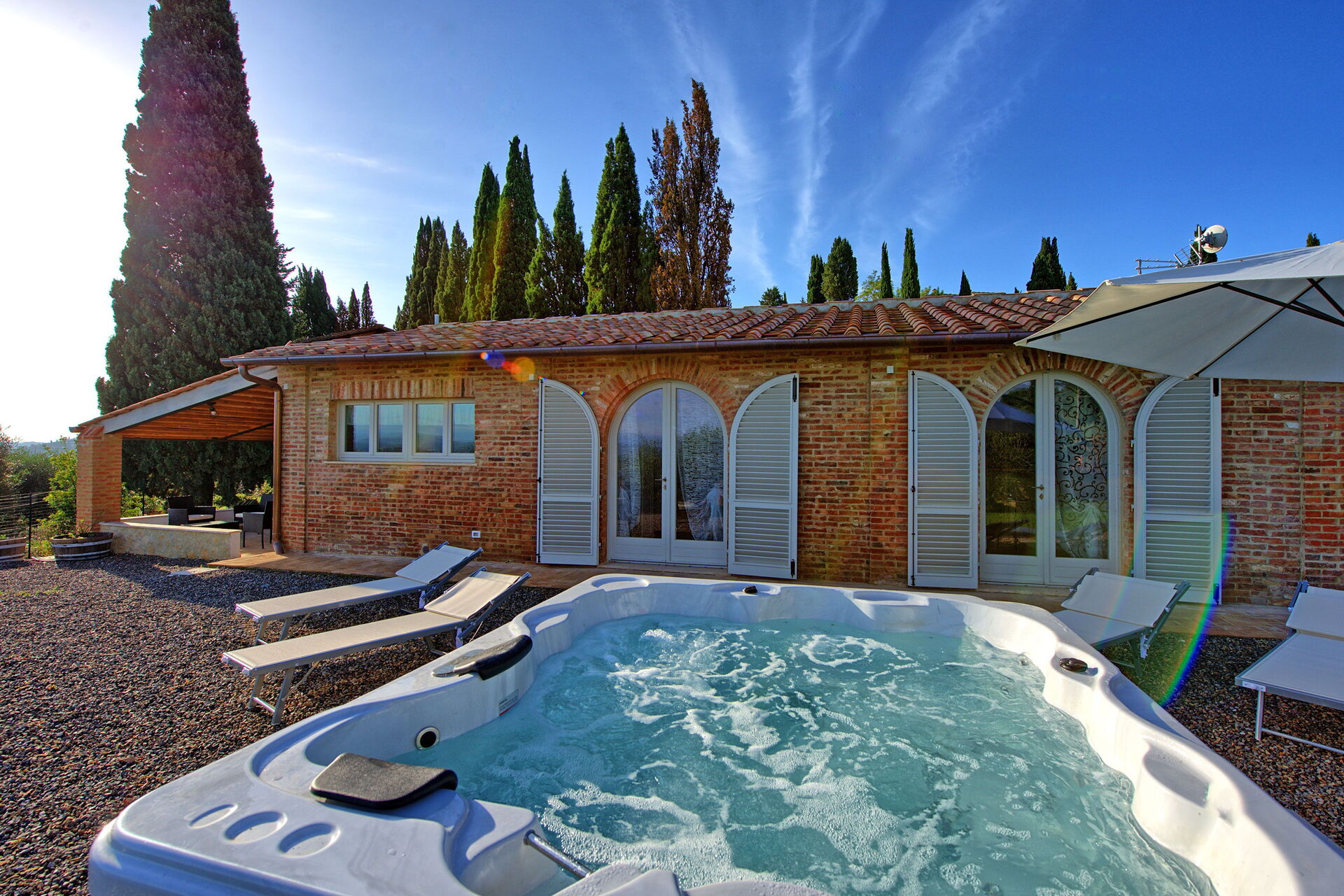 La maison est complètement indépendante et dispose d'un bain à remous Jacuzzi extérieur: grâce à ses 2 chambres et ses 2 salles de bain avec douche, elle convient parfaitement à deux couples ou à une famille de 3/4 personnes.