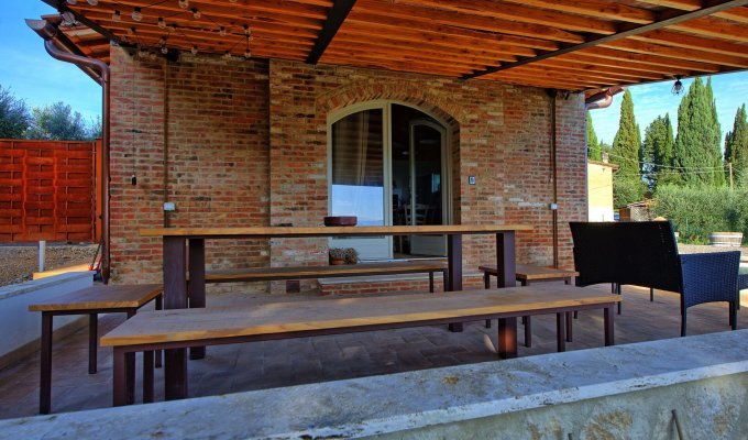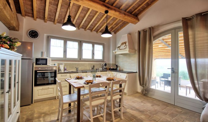 Belle maison de campagne près de San Gimignano, très récemment rénovée et située dans une position panoramique avec vue sur les collines typique de la Toscane.
