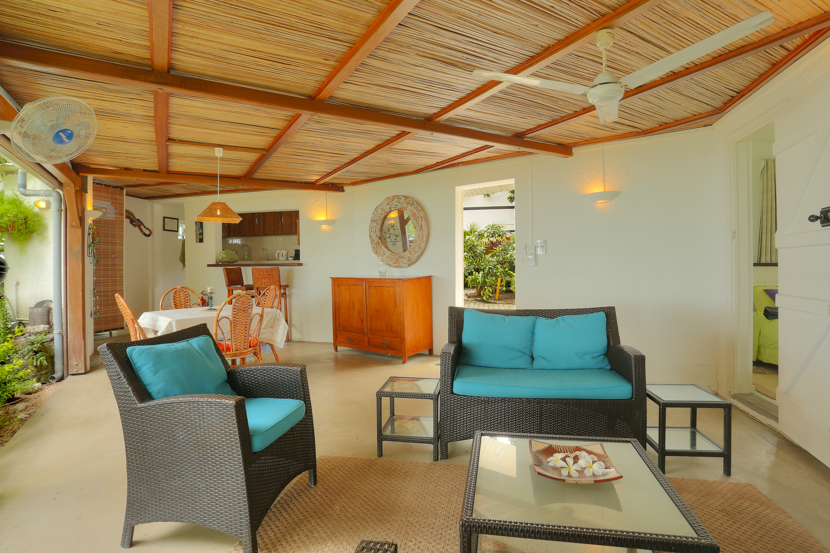 En marchant à travers le jardin privé, vous vous trouverez sous les cocotiers directement sur la plage, avec des chaises longues et une table à votre disposition. Cet endroit paisible et enchanteur est idéal pour se détendre, nager et prendre vos apéritifs.