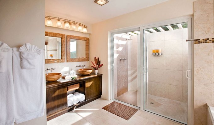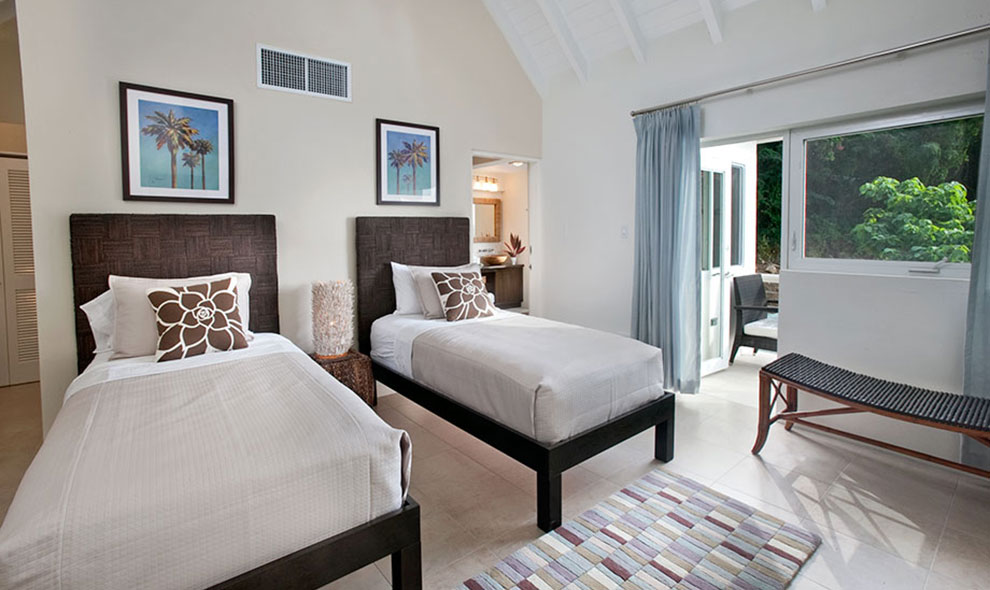Le niveau supérieur dispose d'une deuxième chambre à coucher principale, une troisième chambre spacieuse et une buanderie. Chaque chambre dispose d'un balcon privé avec vue sur Brewers Bay et l'île voisine de Jost Van Dyke. Chaque chambre dispose également d'une salle de bain complète intérieure et douche extérieure.
