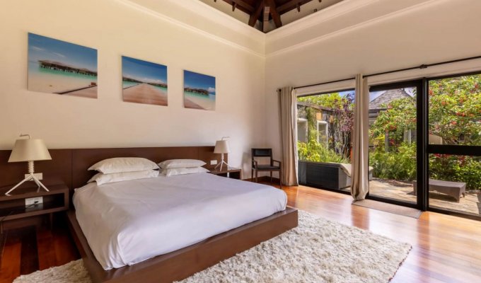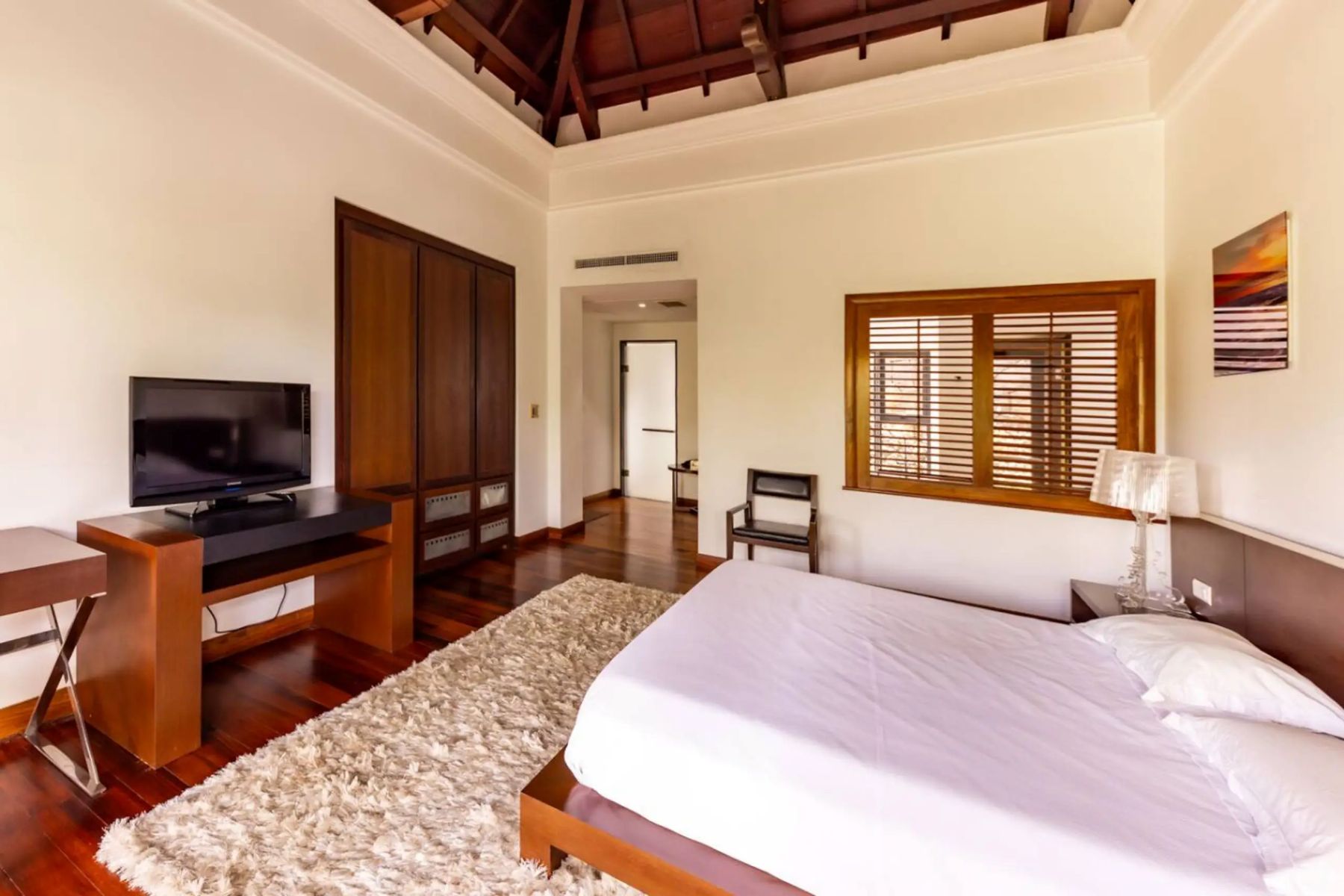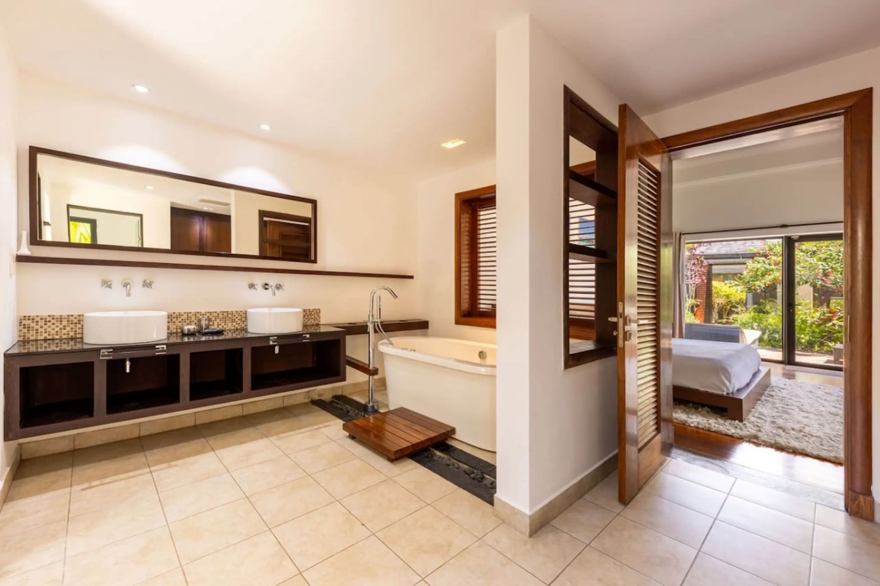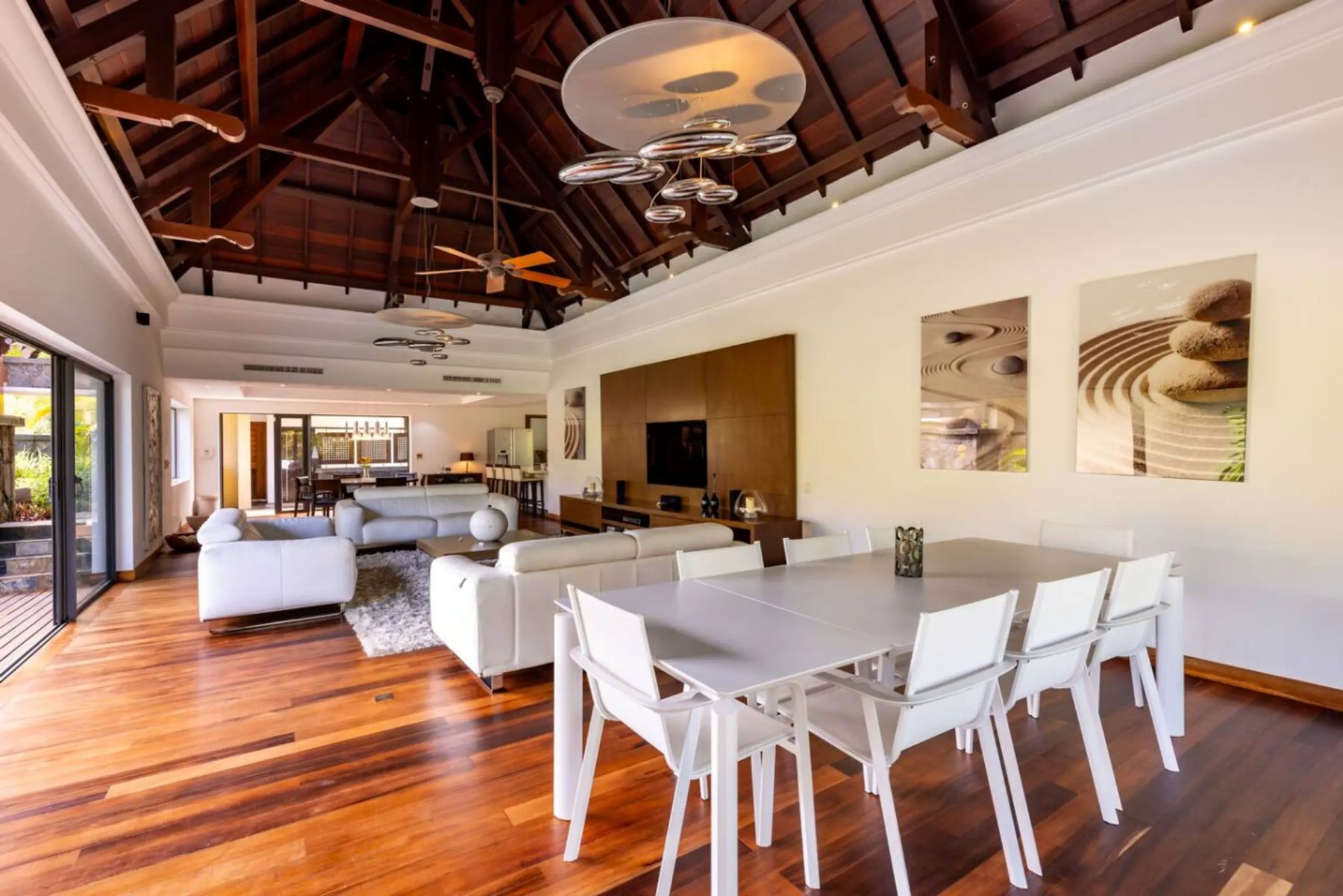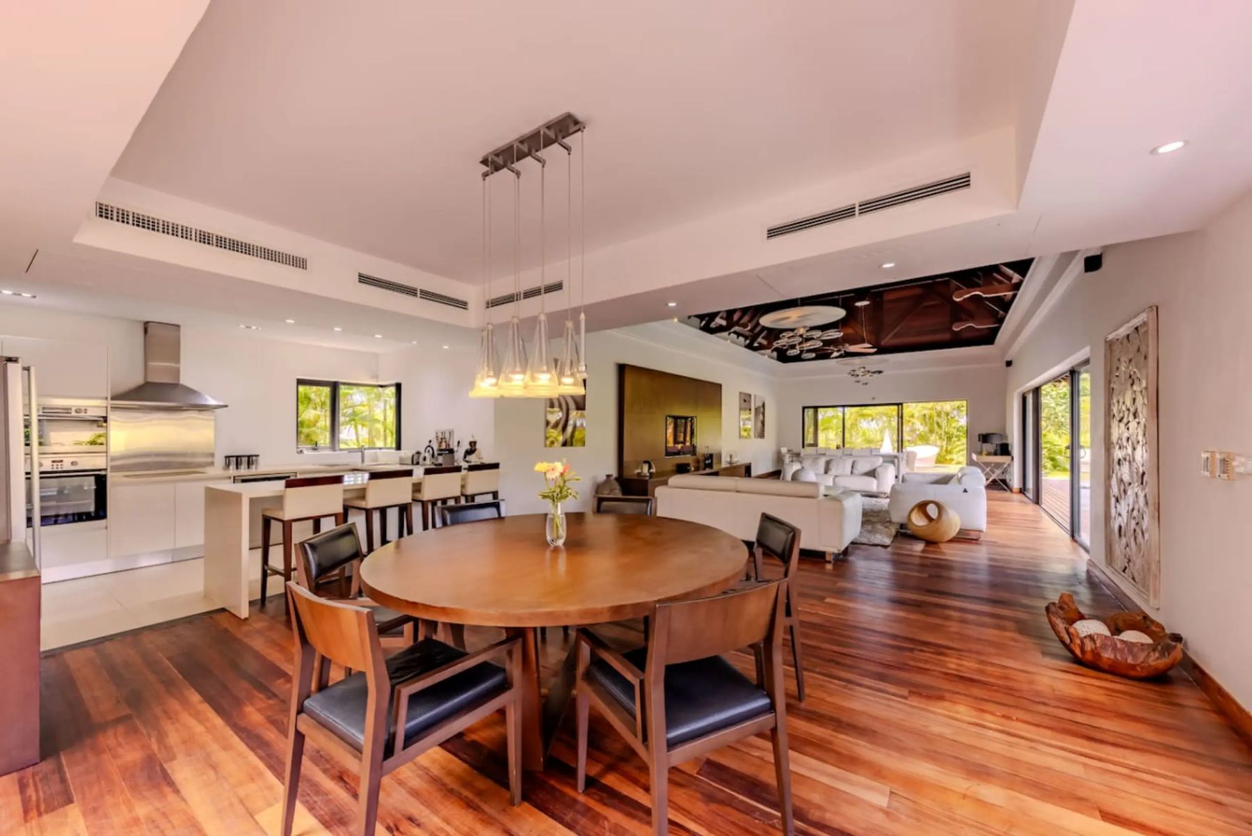 Les chambres climatisées disposent de salles de bains attenantes, dont certaines avec douches extérieures pour une expérience immersive au cœur de la nature. Le vaste espace de vie, élégant et lumineux, comprend un salon raffiné, une salle à manger ouverte et une cuisine moderne entièrement équipée.