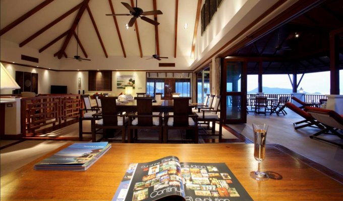 La disposition unique comprend un salon spacieux, espace extérieur avec un grand pavillon ombragé et belle piscine incurvée à débordement donnant sur la mer d'Andaman, peut-être l'une des meilleures vues du domaine.