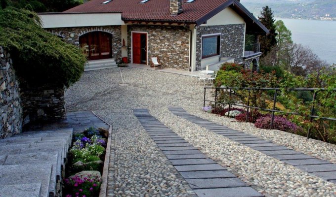 L'aire de repos est au niveau du jardin, toutes les chambres donnent sur le porche et les belles vues offertes par les îles Borromées.