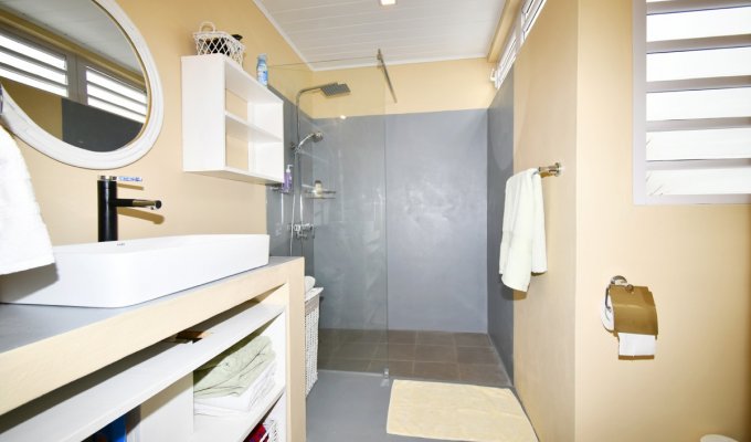Il offre une vue imprenable sur le lagon et les îles du nord, tout en garantissant une intimité totale : aucune vue directe sur le jacuzzi ni sur les côtés de la propriété.