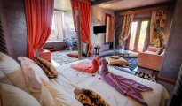 Super adresse Superbe Riad dans un écrin de verdure loin du tumulte de la ville. Vous pourrez profiter paisiblement de la piscine dans ce cadre plein de quiétude. L’équipe sera aux petits soins afin de rendre votre séjour le plus agréable possible. La cuisine est délicieuse, simple mais terriblement efficace, tajines et grillades sont à tomber! Les chambres sont spacieuses et enlevées, toujours dans le but de prolonger cette impression de sérénité et d’élégance. Le nombre restreint de chambre en fait un cocon que l’on ne souhaiterait pas quitter.