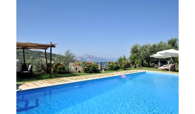 Cette villa est une magnifique villa avec piscine entourée par les collines de Sorrento. Cette villa de luxe offre une vue imprenable sur Capri et la baie de Naples.