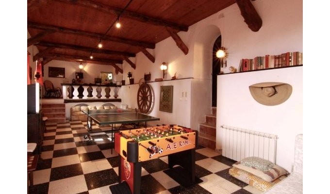 Zone de loisirs : L'étage inférieur est consacré aux loisirs: salle de billard, une bibliothèque et une salle de jeux avec table de ping-pong et jeux de société disponibles.