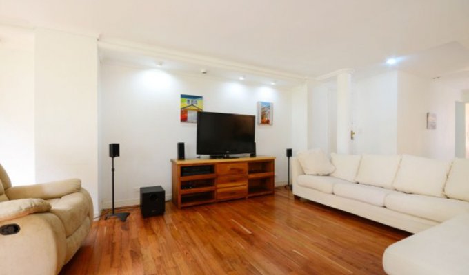 A l'intérieur il y a une grande cuisine avec fenêtres sur la terrasse de sorte que vous pouvez ouvrir et servir tous les aliments de cette façon si vous voulez. Le salon est immense et avec une télévision à écran plasma, un canapé blanc agréable et une salle à manger. Toutes les chambres sont d'un côté de l'appartement. La chambre 2 et la Master chambre ont accès au balcon et la terrasse, salle de bain privée et écran TV LC2 32 pouces.