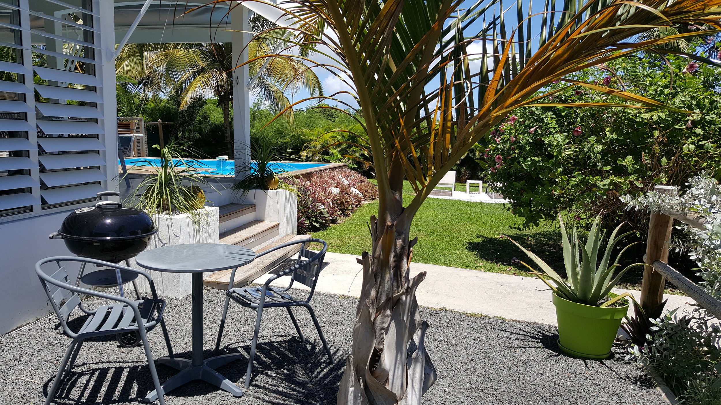 Tout d'abord, un accueil chaleureux avec Mr et Mme GOCHAYE : en effet, ils nous attendaient avec le sourire, un planteur fait maison ainsi qu'une corbeille de fruits et de quoi petit déjeuner le premier matin ! Villa très propre, décorée avec goût et bien agencée. Le tout dans un cadre très soigné et arboré. Nous avons même eu la chance de déguster chaque jour des mangues provenant du jardin étant donné la saison ! Mr GOCHAYE a eu la gentillesse de venir nous cueillir des noix de coco et de nous les faire déguster ! Bref, un séjour d'une semaine bien réussie et avec nos amis, nous en sommes revenus enchantés ! Juste pour parfaire le tout, quelques couverts en plus seraient les bienvenus ainsi qu'un éclairage au-dessus du miroir de la salle d'eau dans la chambre à l'étage. Revoir la programmation de la climatisation à l'étage.