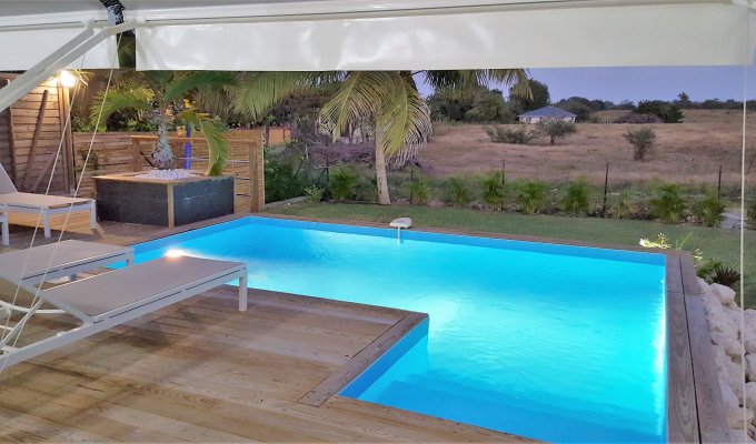 Cette magnifique villa est située dans une propriété privée, bercée par les alizés, calme avec une belle vue dégagée et une piscine sécurisée traitée au sel. Elle est à 5 mn en voiture du centre-ville de Saint-François et de la plage de Raisins clairs et à15mn de la Pointe des Châteaux.