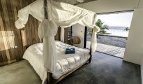 un pavillon comprenant deux chambres équipées chacune d’un lit double et d’une salle de bains privative avec toilettes offrant également une vue unique sur la piscine et l’océan,