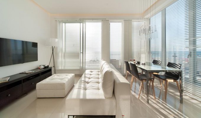 Moderne et élégant avec vue panoramique sur la mer Méditerranée. Un rare appartement de 2 -Chambres face à l'une des plus belles plages de Tel Aviv.