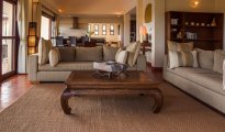 Lorsque vous entrez dans la Villa, vous tombez sur une vue imprenable. L'habitation principale comporte une salle à manger un coin cuisine s'ouvrant directement sur une terrasse et une grande piscine à débordement.
