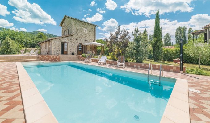 Maison de vacances originale avec tourelle, piscine et vue sur la vallée du Tibre. Cette location avec sa tour de style moyenâgeux se trouve à 4 km de Trestina, dans un petit pâté de maisons, sur les hauteurs. Le logement est très confortable, meublé avec soin dans le style de la région. Devant la maison se trouve une grande terrasse avec barbecue, et en contrebas profitez de la piscine privée. Depuis la terrasse vous aurez une large vue sur la vallée du Tibre. La grande route E15 vers Rome passe à 2 km de là. D'ici, vous pouvez vous rendre dans de nombreuses villes incontournables, en 1h de route : Città di Castello et ses thermes à 15 km, Cortona, Arezzo, Pérouse, Assise... 30 km vous séparent du Lac de Trasimène, de ses plages de sable et de ses îles pittoresques. Umbertide, commune du Moyen-Âge, avec ses nombreux commerces en tous genres, ses restaurants, ses bars et son marché sont à 5 km.
