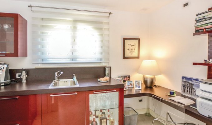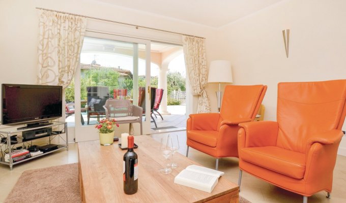 Cette confortable et jolie maison de vacances avec piscine se trouve dans un quartier à quelques minutes du lac de Garde et à 1km du centre de Manerba. Ce village se trouve à proximité du joli "Parco della Rocca" situé en face de l'île S. Biagio, connue aussi sous le nom de "Isola dei Conigli" (L'île des lapins). Vous disposerez d’un grand jardin privé. La maison est répartie sur deux étages. Au rez-de-chaussée: élégant séjour avec cheminée, coin cuisine séparée, deux chambres, une chambre avec lit superposé et deux salles de bain. Un petit escalier vous mène au sous-sol où vous trouverez une pièce de vie avec cuisine et coin salle à manger, une chambre double et une salle de bain. L'extérieur est équipé d'une table, de chaises longues et d'un barbecue. La propriété se situe sur une colline verdoyante entre les oliveraies et les vignes. L'endroit propose de nombreux parcours historiques, œnologiques et gastronomiques, ainsi que des pistes cyclables et de jolies plages. Vérone à 50 km et Venise à 150 km.