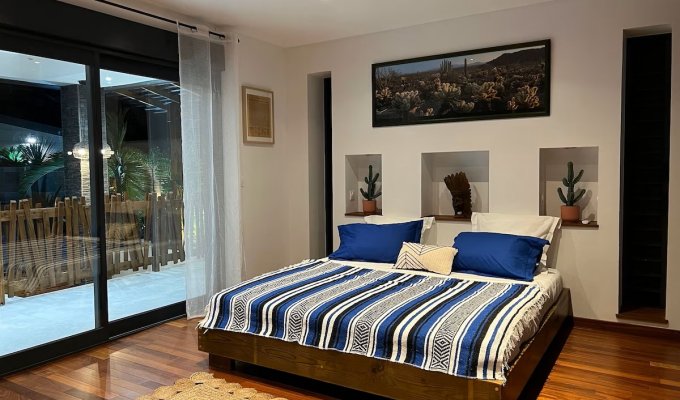 La villa s’organise autour d’un vaste salon ouvert sur une terrasse panoramique, parfait pour se détendre ou partager un apéritif. La cuisine moderne, équipée d’appareils haut de gamme, vous garantit praticité et plaisir culinaire.