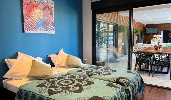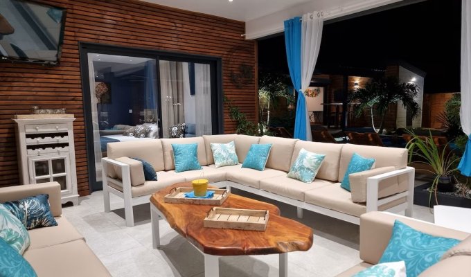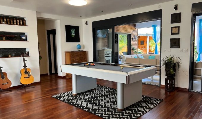 Location villa Guadeloupe Saint-François pour 14 pers, 7 chambres climatisées et 6 salles de bain, piscine privée, pool house, bbq, billard et terrain de pétanque