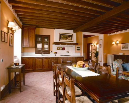 Maison de campagne de charme située sur les collines entre Arezzo et Florence. Cette location est parfaite pour des groupes nombreux à la recherche d’un endroit calme et tranquille. La Villa est meublée confortablement dans le style des maisons de campagne du pays et retient beaucoup de ses caractéristiques originaires, comme les poutres apparentes, les plafonds voutés et les cheminées en pierre, qui contribuent à créer une atmosphère de charme. La piscine privée se situe dans le jardin qui bénéficie d’un beau panorama, un endroit idyllique pour se relaxer en plein cœur de la campagne.